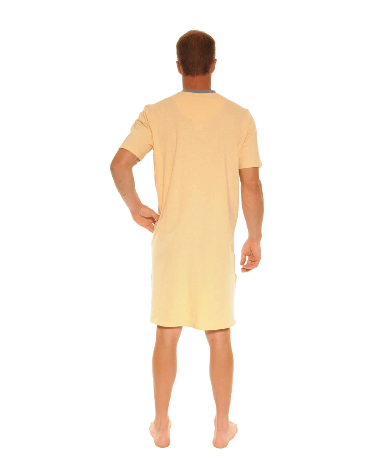 Chemise de nuit manches courtes pour homme en jersey 100% coton apprĂ©ciĂ©e par des hommes qui recherchent le confort et la libertĂ© de mouvements pour dormir. Cette liquette jaune vanillĂ©, effet flammĂ©, col V dans les tons de bleus, agrĂ©mentĂ©e d’une sĂ©rigraphie Ă l’esprit marin vous apportera confort et bien-ĂȘtre cet Ă©tĂ©. Cet article est confortablement coupĂ© ! Ne prenez donc pas une taille au dessus. Le mannequin mesure 1m80 et porte une taille 3 – Livraison rapide en 48 hrs et toujours les retours gratuits (France mĂ©tropolitaine)