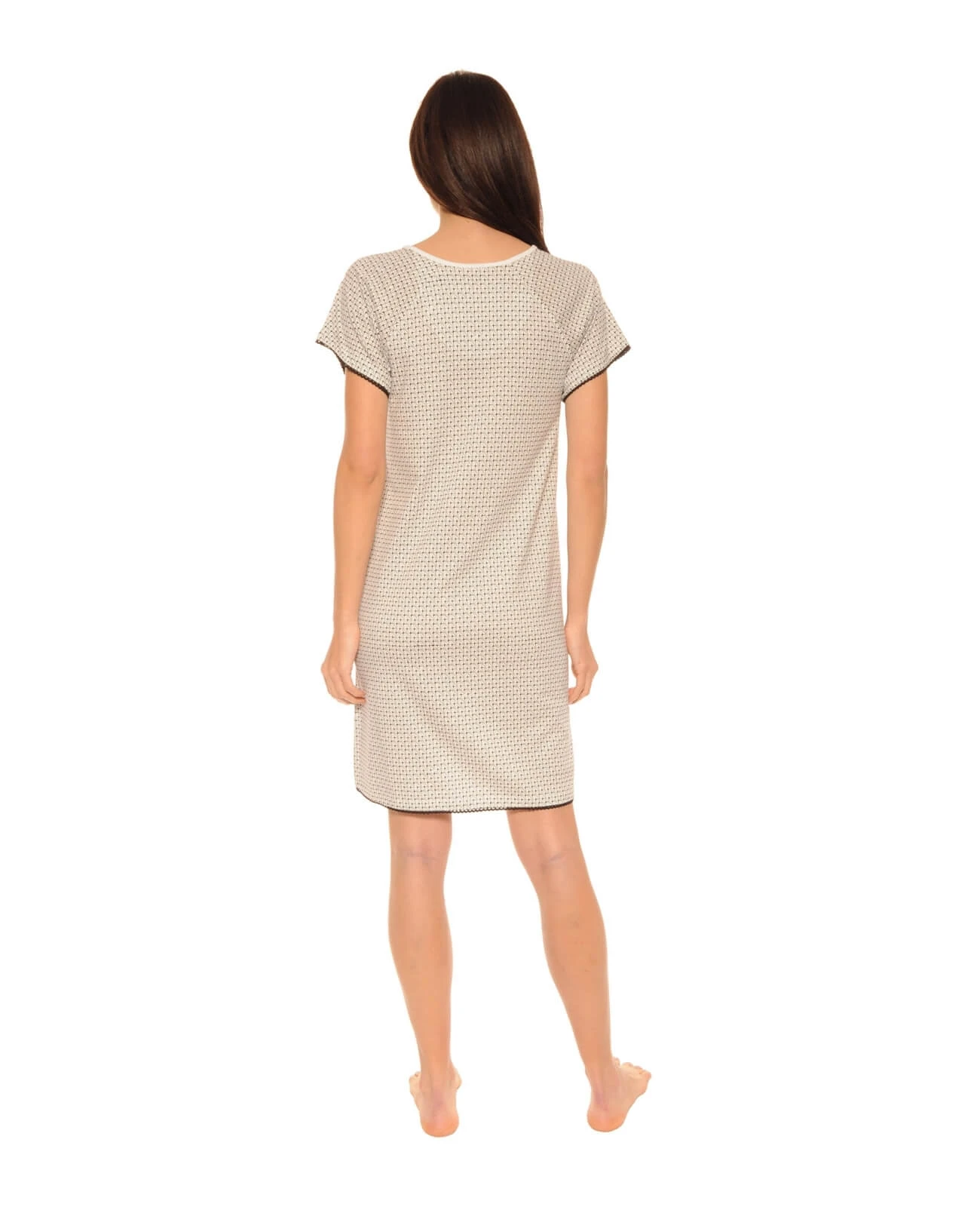 Chemise de nuit aux motifs Ă©toiles / losanges qui met en opposition les coloris Ă©cru et noir pour vous mettre de bonne humeur et vous donner bonne mine dès le matin. Un modèle chic et sobre, idĂ©al pour passer une nuit sereine dans les Ă©toiles. Le col V Ă©cru est suffisamment dĂ©gagĂ© pour se sentir libre. La poche poitrine Ă©crue coordonnĂ©e au col V rĂ©veille le modèle alors que le bas des manches courtes et de la robe sont dĂ©licatement soulignĂ©es par un croquet noir. La longueur de 90 centimètres arrive au dessus du genou et convient Ă toutes les tailles. Robe en jersey 50% coton 50% Viscose, une belle matière douce et soyeuse qui vous garantira un confort agrĂ©able. La mannequin mesure 1m70 et porte une taille S – Livraison rapide en 48 hrs et toujours les retours gratuits (France mĂ©tropolitaine)