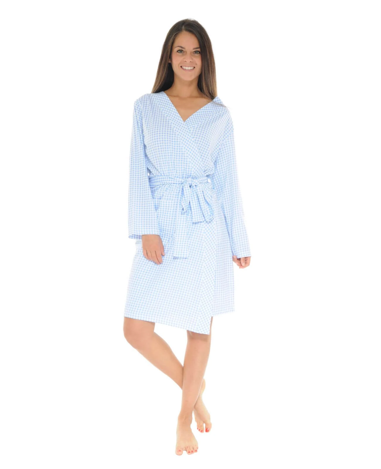 Ce gilet léger aux fraßches couleurs carreaux bleu ciel et blanche comporte deux poches plaquées sur le bas ton sur ton.