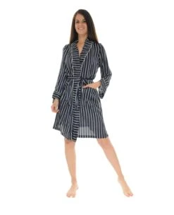 ĂlĂ©gant et dĂ©contractĂ©, ce kimono Ă rayures saura vous sĂ©duire avec son tissu ultra confortable en satin chaĂźne et trame !