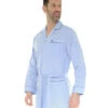 Elle est aussi dotĂ©e d’un col V ainsi que d’un magnifique et original imprimĂ© sur un thème savane et sur des tons de bleu canard sur fond blanc.
