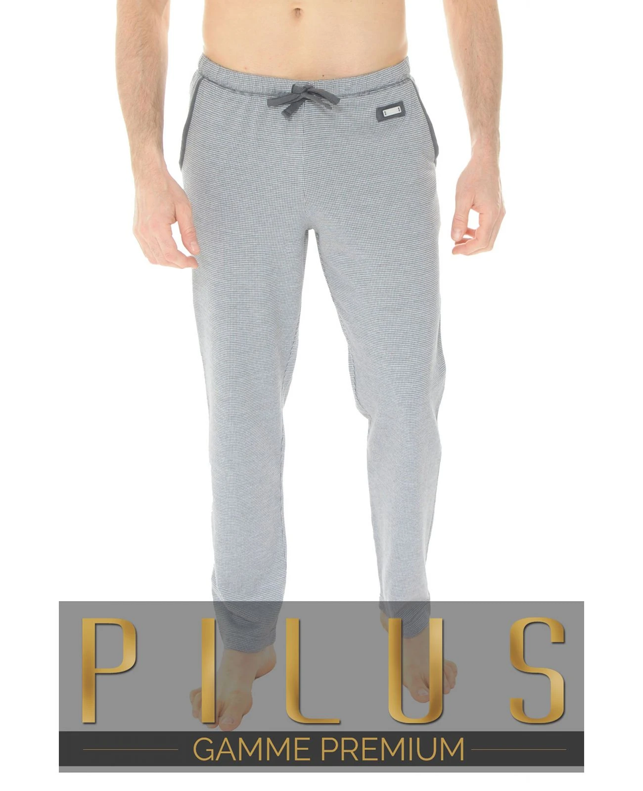 Pantalon gris chiné, agréable à porter grâce à sa matière en jersey de coton.
