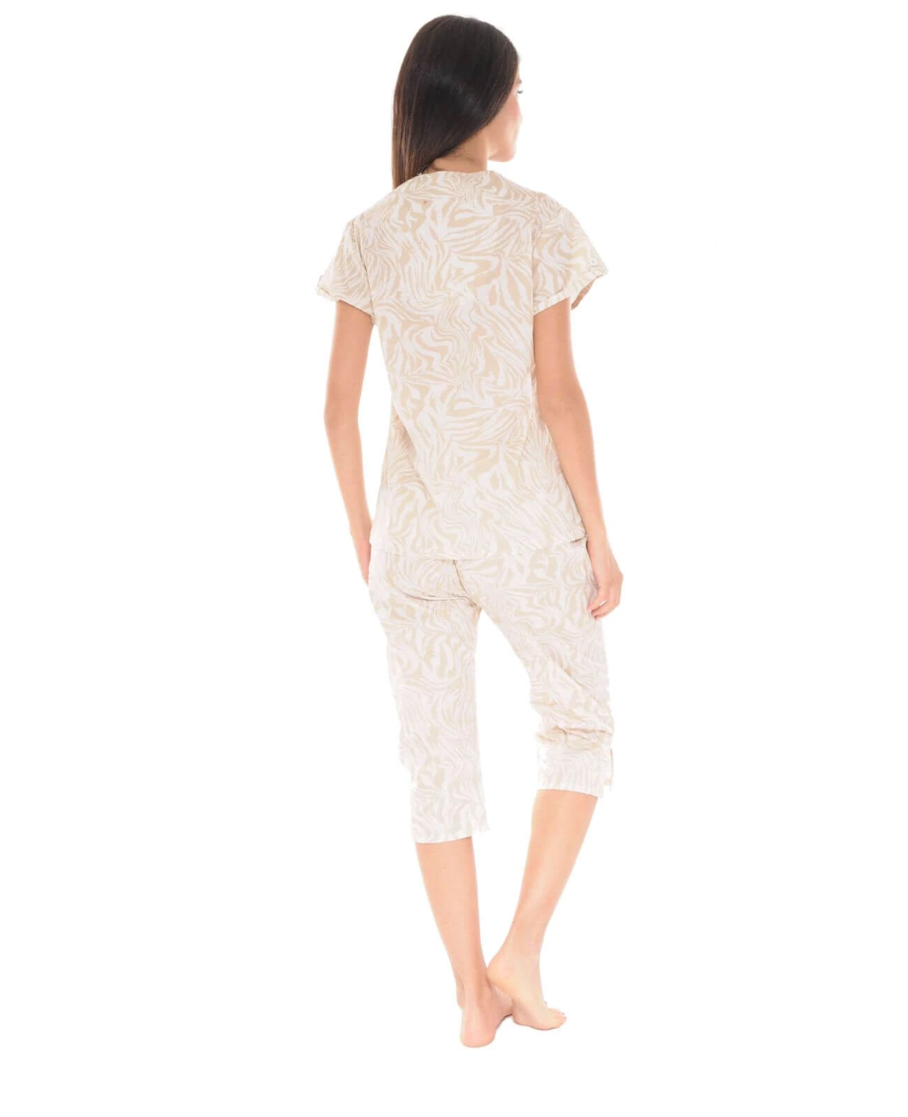Ce pyjama est composĂ© d’un t-shirt Ă manches courtes d’une longueur de 66 cm, entiĂšrement boutonnĂ© de 4 boutons afin que vous puissiez l’enfiler plus facilement et d’un traditionnel col V.