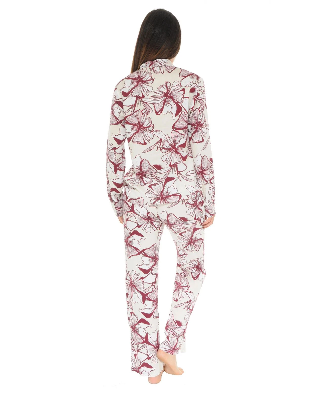 Un pyjama doux et tout confort pour cet hiver ? Optez pour le pyjama TANYA et ses belles fleurs bordeaux sur fond écru !