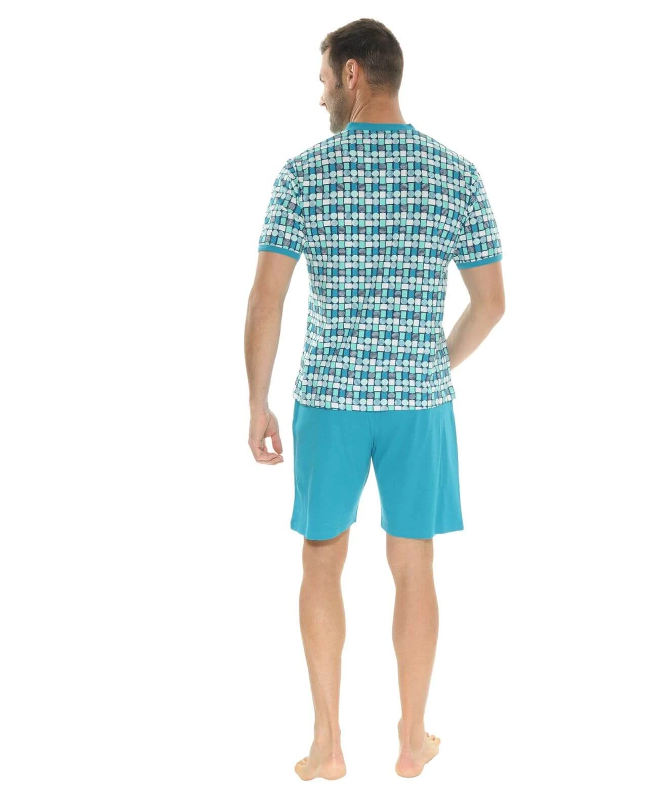Ce pyjama, manches courtes, col V dans un ton de vert et bleu turquoise vous accompagnera dans tous vos moments de détente.