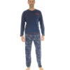 Un pyjama facile à enfiler grâce à son haut forme chemise qui satisfera tous les goûts, vous serez séduit par son aisance et par son imprimé géométrique au style très moderne dans les tons de bleu et rouge.