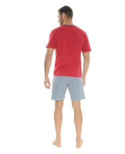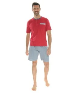 Pour vos nuits ou journées d’été, choisissez notre pyjama court NAEL en jersey de coton léger et frais. Tee shirt uni rouge, un coloris classique, très lumineux et estival, col rond au bordage bleu marine ouverture par 3 boutons.