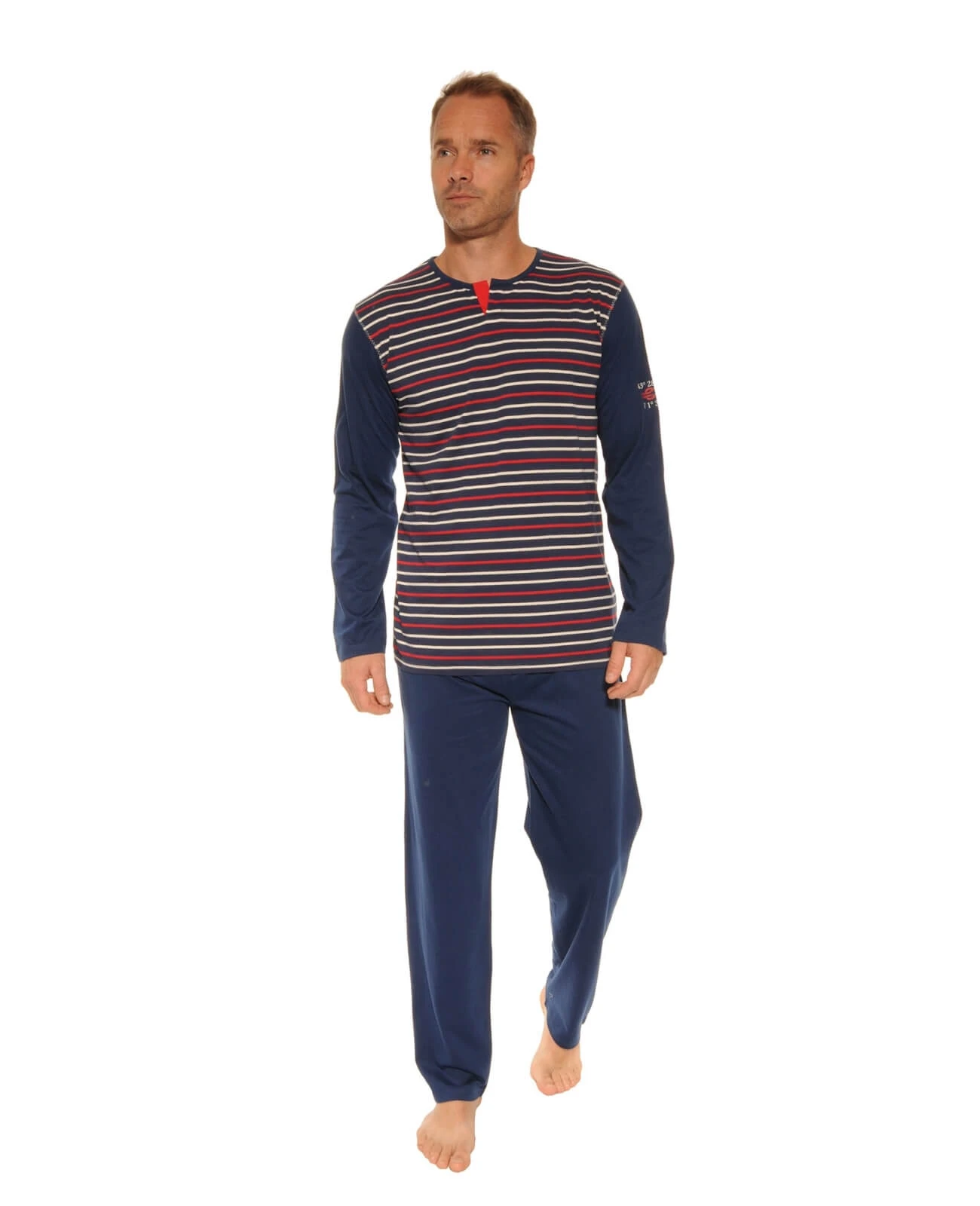Pour des moments de dĂ©tente rĂ©ussis, craquez pour notre pyjama ELRICK au style nautique qui mixe des rayures blanches marines et rouges Ă l’uni marine pour un look sportswear, chic et dĂ©contractĂ©. Pyjama en maille jersey de pur coton. Haut mariniĂšre col rond avec fente pour faciliter le passage de la tĂȘte et imprimĂ© de symboles nautiques sur la manche marine. Pantalon uni bleu marine Ă la ceinture Ă©lastiquĂ©e. Cet article est confortablement coupĂ© ! Ne prenez donc pas une taille au dessus. Le mannequin mesure 1m80 et porte une taille 3 – Livraison rapide en 48 hrs et toujours les retours gratuits (France mĂ©tropolitaine)