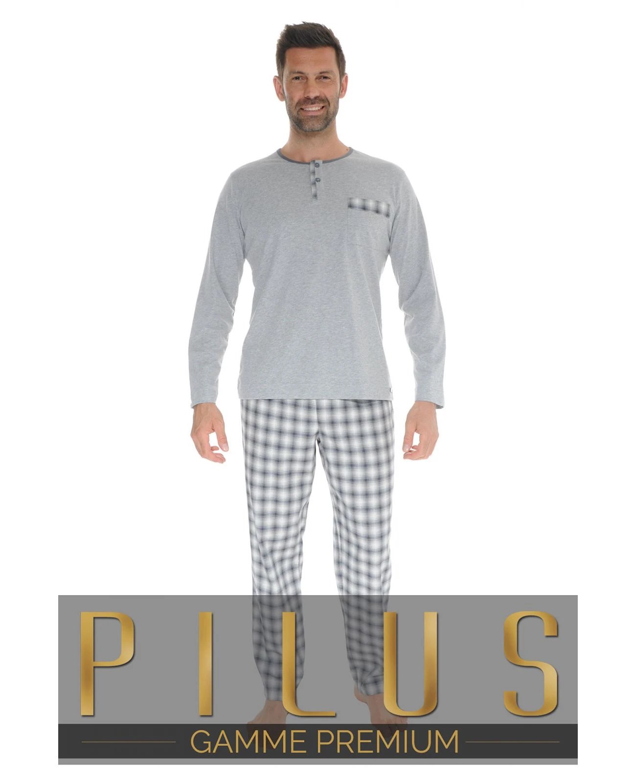 La marque PILUS est prĂ©sente depuis plus de vingt ans sur les cinq continents dans les plus belles boutiques. Les belles matiĂšres, les finitions raffinĂ©es et les coupes impeccables, caractĂ©risent cette gamme Premium. ! LEDONIS, un pyjama sobre et Ă©lĂ©gant avec son tee shirt en maille jersey de pur coton dĂ©clinĂ© dans un coloris gris clair intemporel. Col rond ouverture par deux boutons pour faciliter le passage de la tĂȘte et poche poitrine ton sur ton. Mais vous serez sĂ©duit par les dĂ©licates finitions : le rappel du tissu Ă carreaux du pantalon que l on retrouve le long de la patte du boutonnage et sur le haut de la poche poitrine. Le style est dans les dĂ©tails pour un pyjama d exception. Pantalon Ă carreaux gris clair, confortable en popeline de coton, agrĂ©able Ă porter avec son Ă©lastique de maintien Ă la taille agrĂ©mentĂ© d’un lien de serrage.