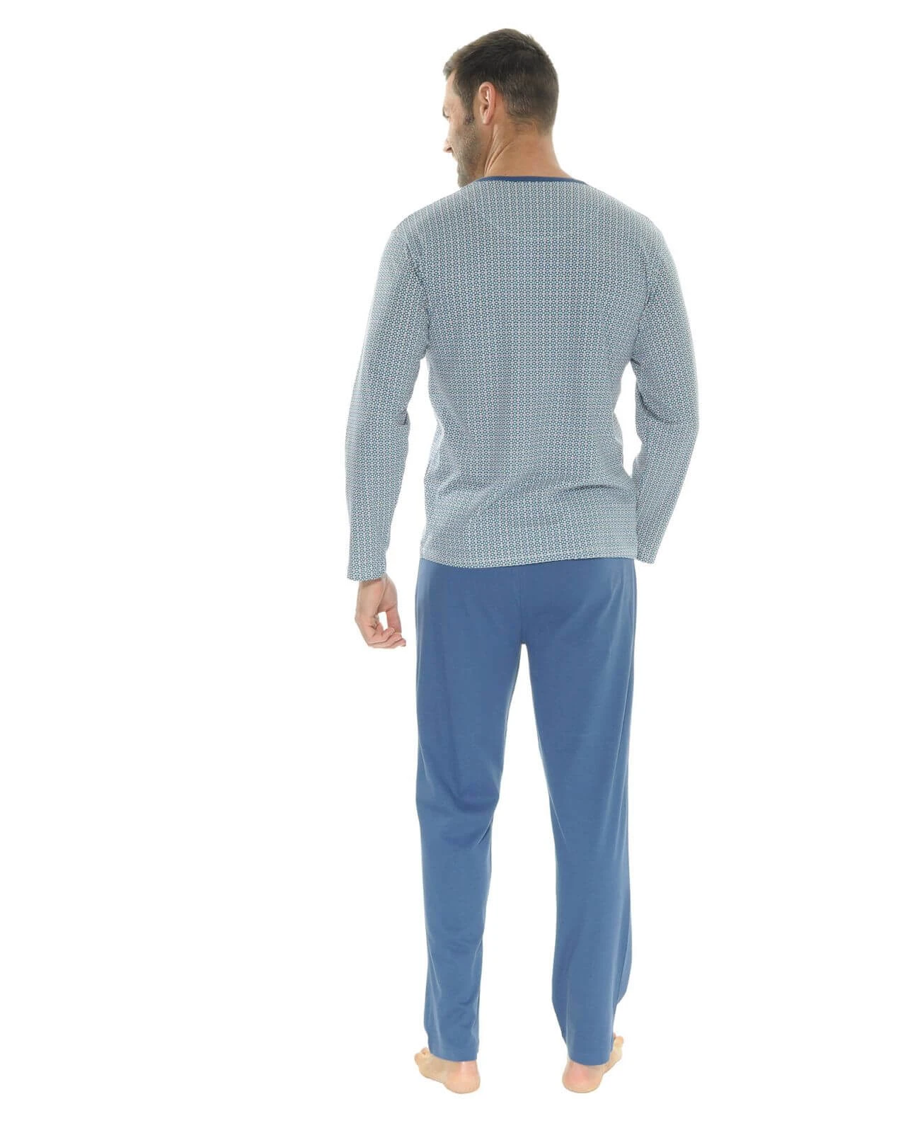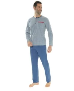 Pyjama long en maille jersey de pur coton que l’on aime porter chez soi pour des instants de repos et de bien ĂȘtre.