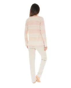 Une rayure imaginée dans un ton trÚs doux, un beige naturel mixé à un rose tendre.