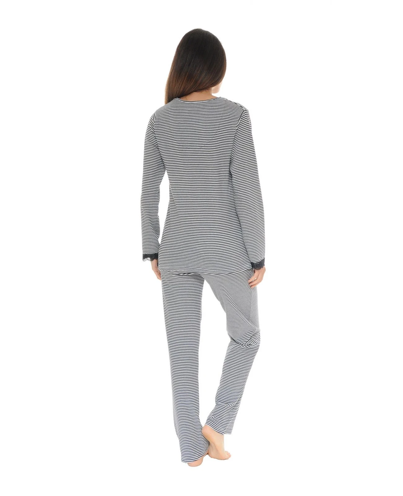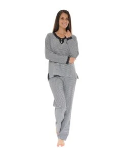 Sublime pyjama long Ă rayures horizontales noires et blanches.