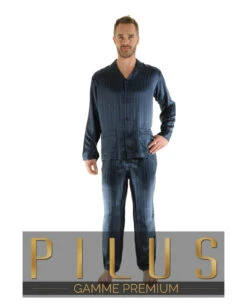 La marque PILUS est prĂ©sente depuis plus de vingt ans sur les cinq continents dans les plus belles boutiques. Les belles matiĂšres, les finitions raffinĂ©es et les coupes impeccables, caractĂ©risent cette gamme Premium. ! Vous avez toujours rĂȘvĂ© de possĂ©der un pyjama en soie? Craquez pour notre pyjama tailleur boutonnĂ© en soie naturelle coloris bleu nuit. La soie, une matiĂšre lĂ©gĂšre, aĂ©rĂ©e pour une tenue soignĂ©e, Ă©lĂ©gante, agrĂ©able Ă porter. Son pantalon avec ceinture Ă©lastiquĂ©e, braguette deux boutons s’adaptera Ă votre silhouette pour un parfait maintien et confort.
