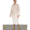 L’ensemble est composĂ© d’un t-shirt manches courtes style chemise, Ă col tailleur et entièrement boutonnĂ© de 5 boutons dont un bouton sous col.