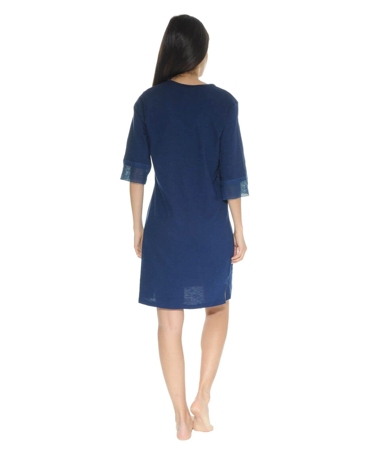 Une robe légère en maille 100% Coton flammé, une dose de romantisme et de fraîcheur, un coloris intemporel uni marine sublimé par des finitions macramé ton sur ton.