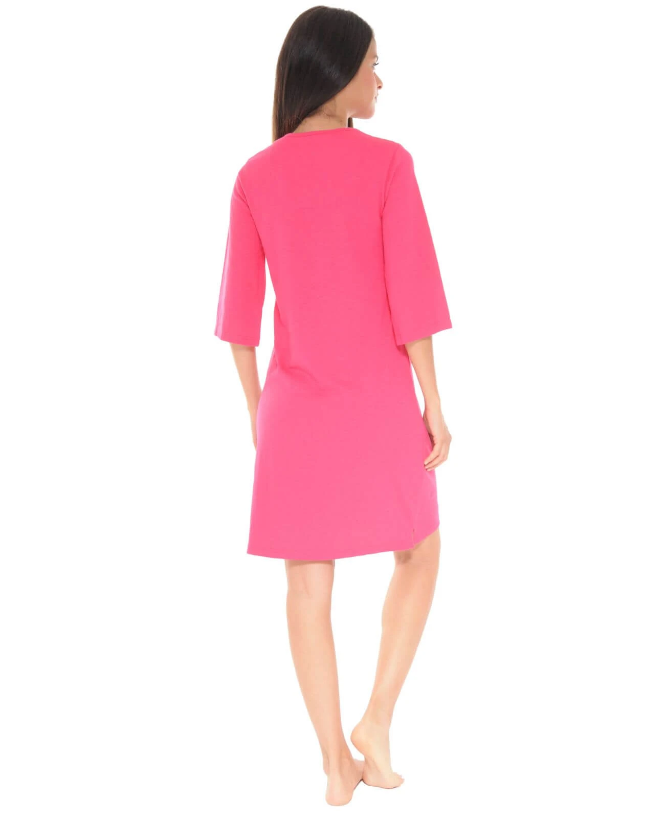 Cette robe est parĂ©e d’une couleur vive fuchsia toujours très apprĂ©ciĂ©e, ainsi que d’un col rond avec possibilitĂ© d’ouverture par un bouton.