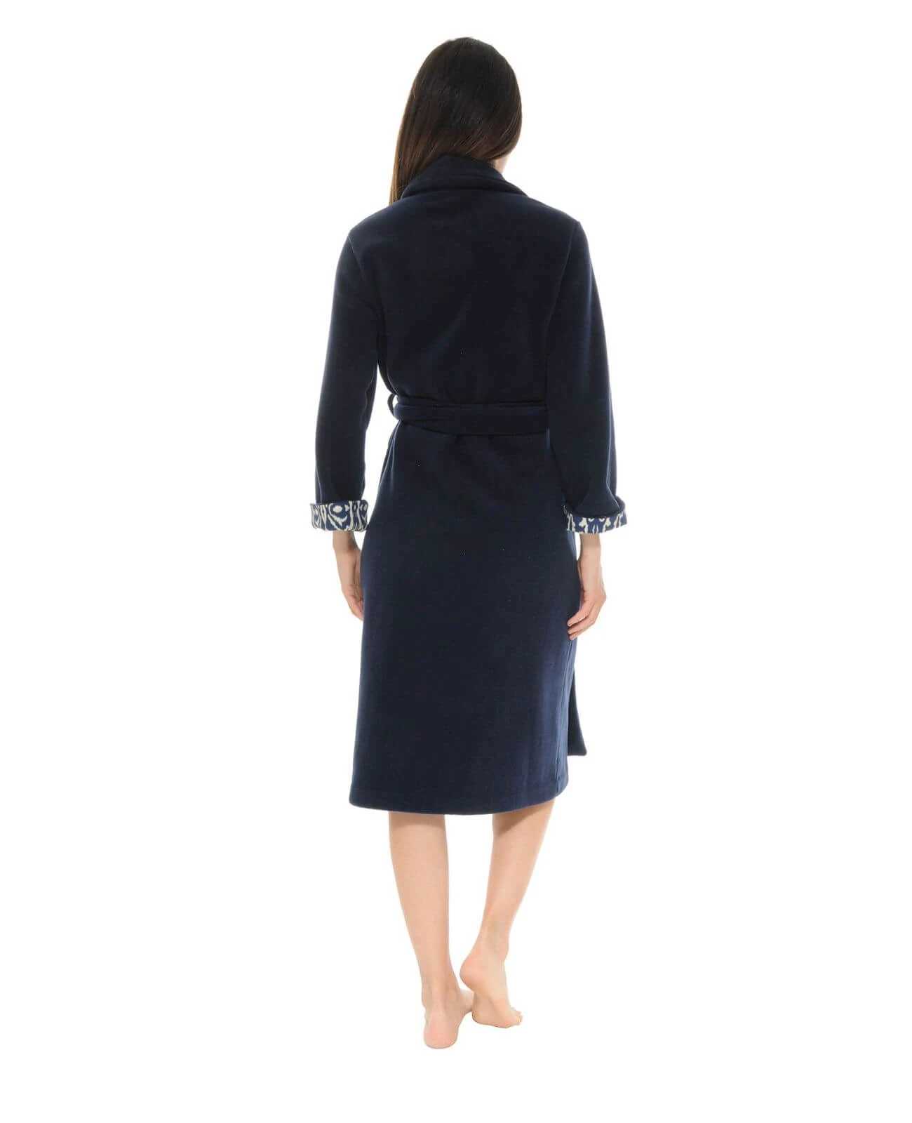 Adoptez un style dĂ©contractĂ© et chic en mĂȘme temps avec cette robe de chambre chaude bleu marine en molleton polaire 100% polyester.