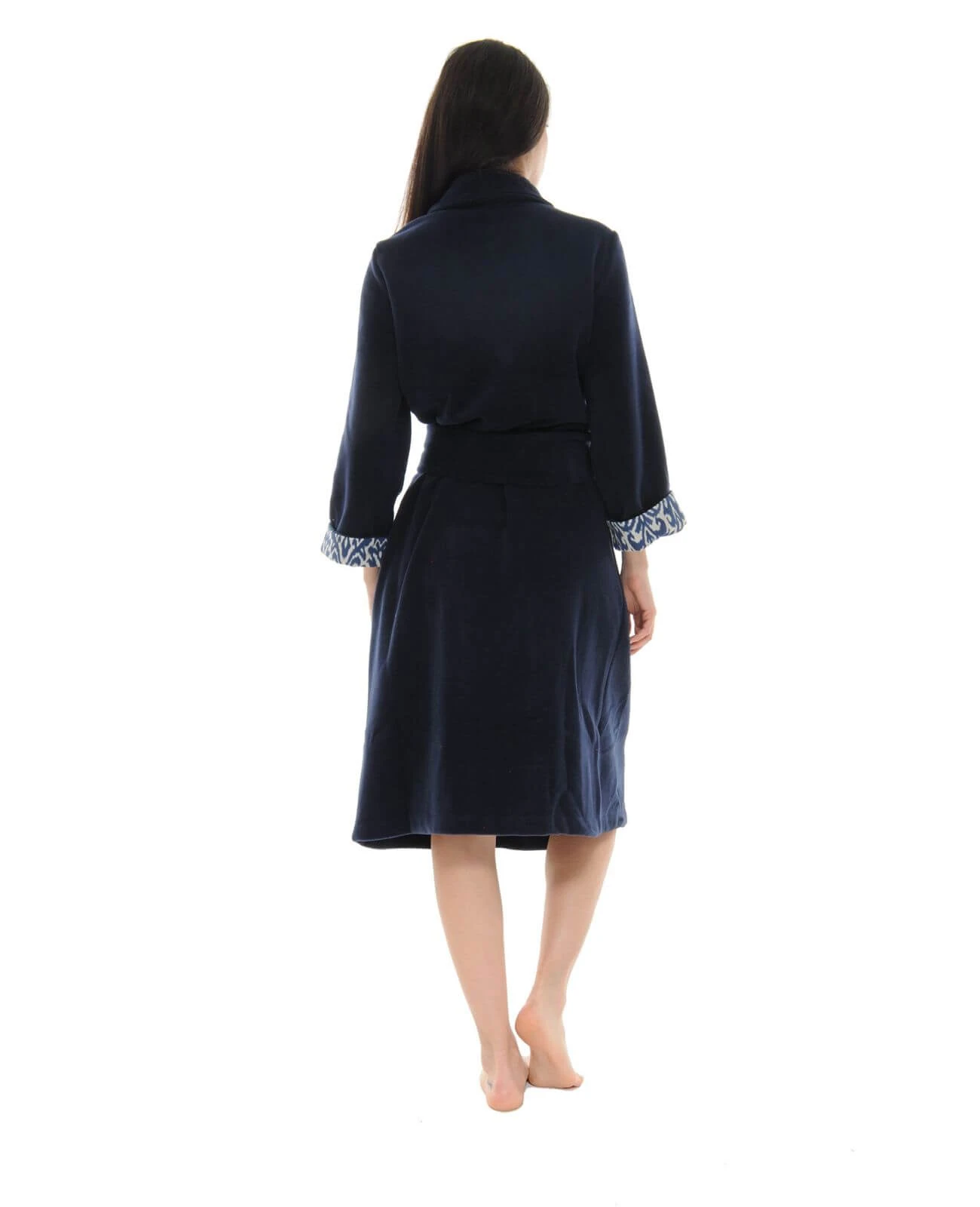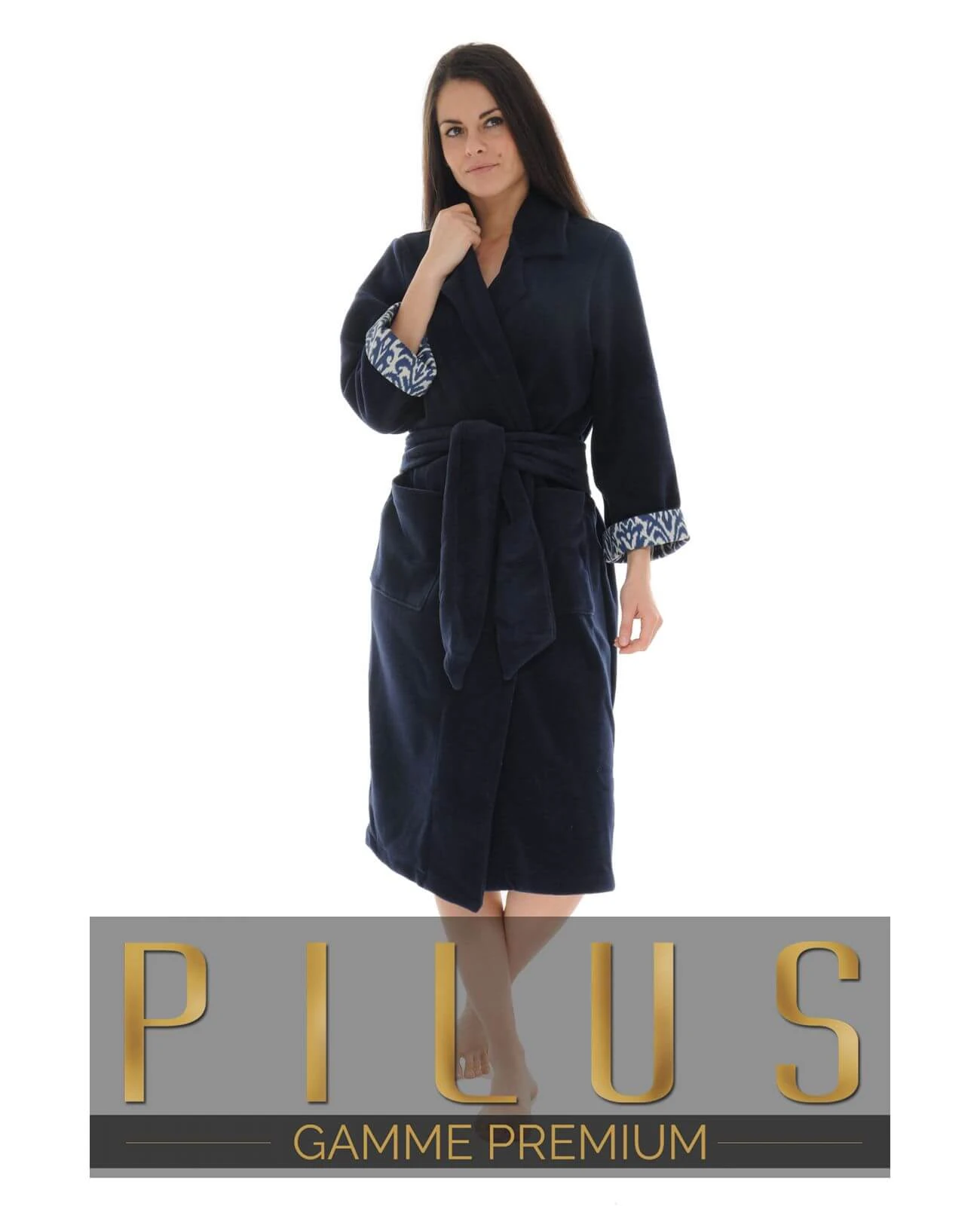 Adoptez un style dĂ©contractĂ© et chic en mĂȘme temps avec cette robe de chambre chaude bleu marine en molleton polaire 100% polyester.